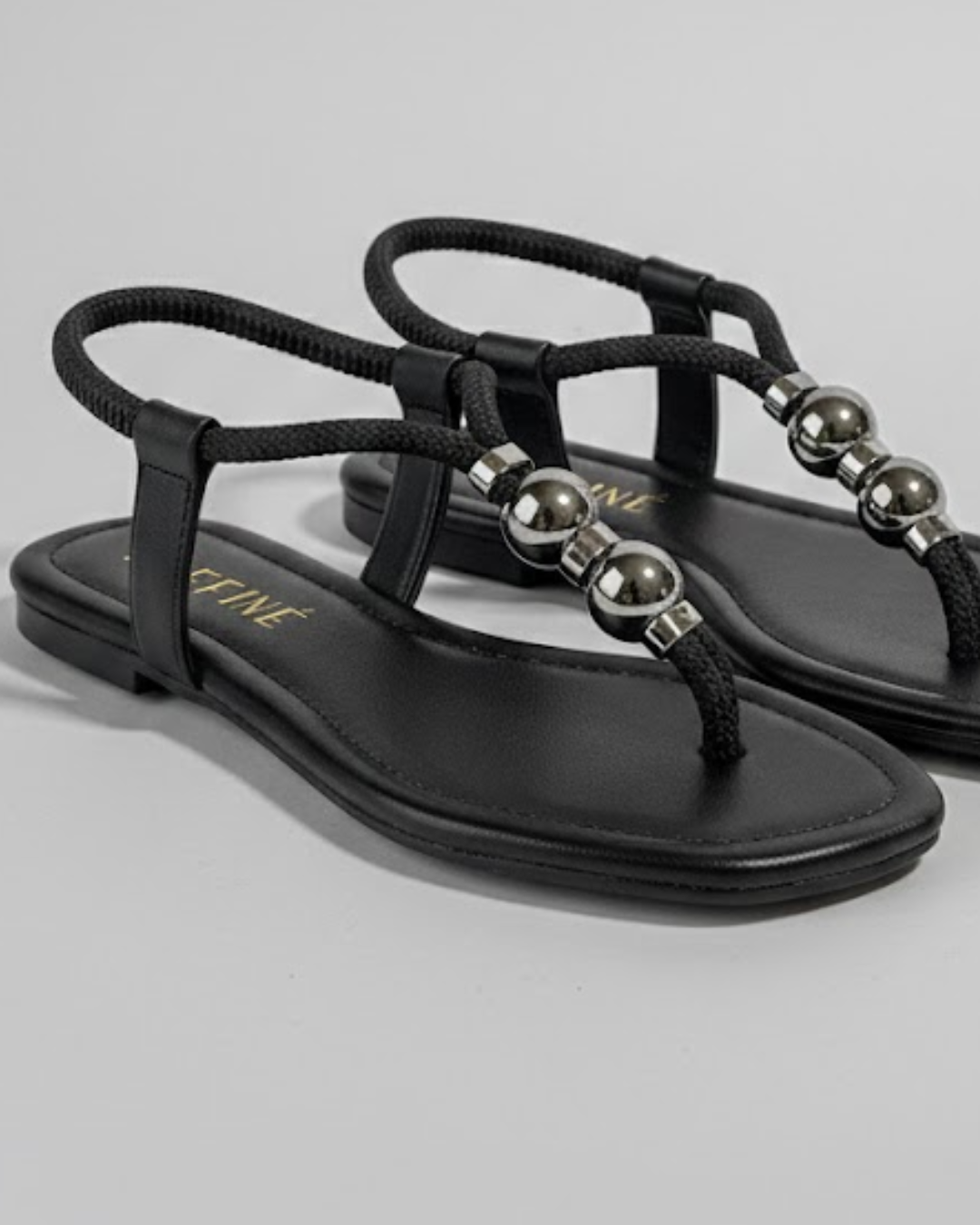 Feita na cor preta (o clássico que combina com TUDO!), ela é o toque de glamour discreto que seu look precisa. O segredo? A tira em cordão trançado macio que abraça seu pé, garantindo leveza e conforto o dia todo. Pode dizer adeus àquelas tiras que apertam!